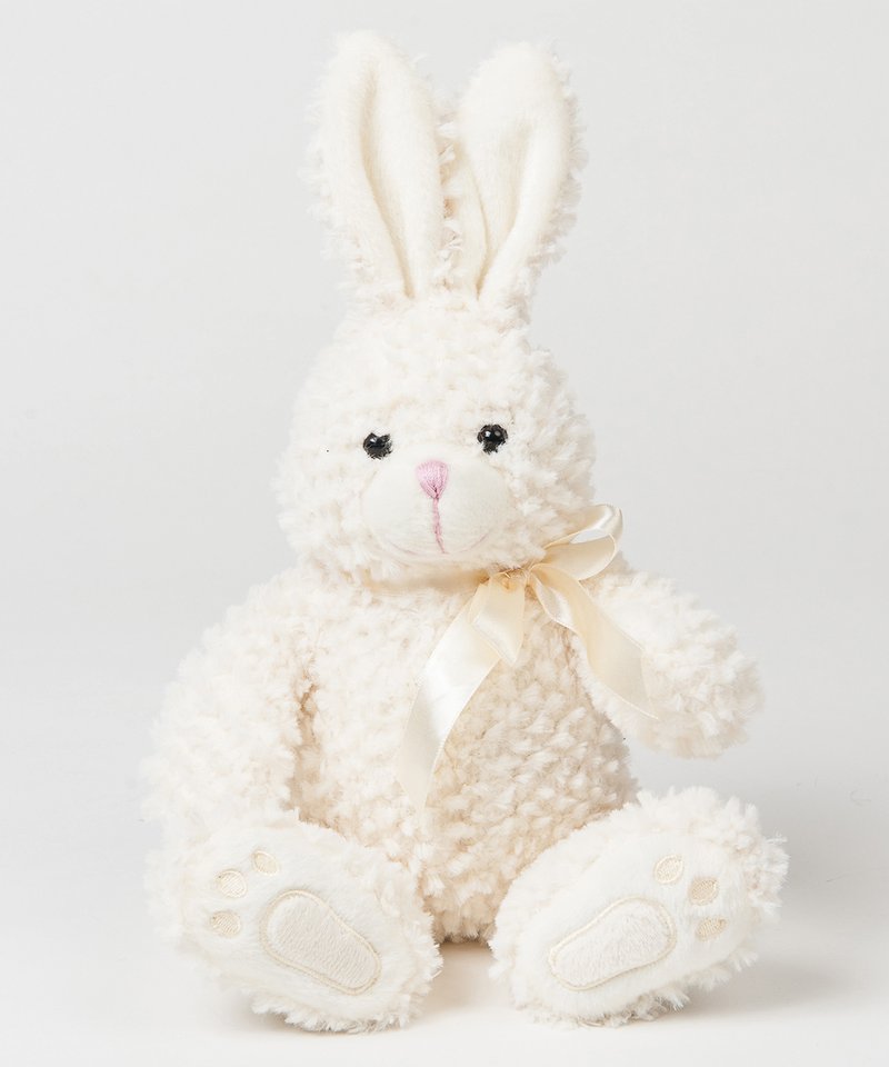 Hop along with Bunny with it's super-soft, cream coloured fabric with self-coloured ribbon, inner ears and paws.